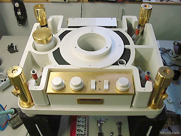 THORENS的REFRENCE是他家的老大,窃以为其设计思路是:大重量、低重心、钢板弹簧悬挂减震、电动机与转盘部分分离。简单地讲它是一种“重型软盘”的设计。