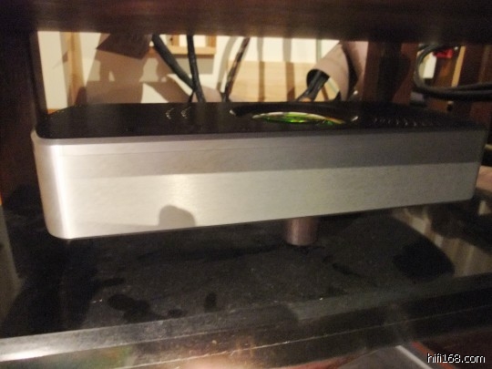 再将钉子放到解码器上试听。下图的和弦DAC64MKII解码机脚是我原使用的紫檀木钉。