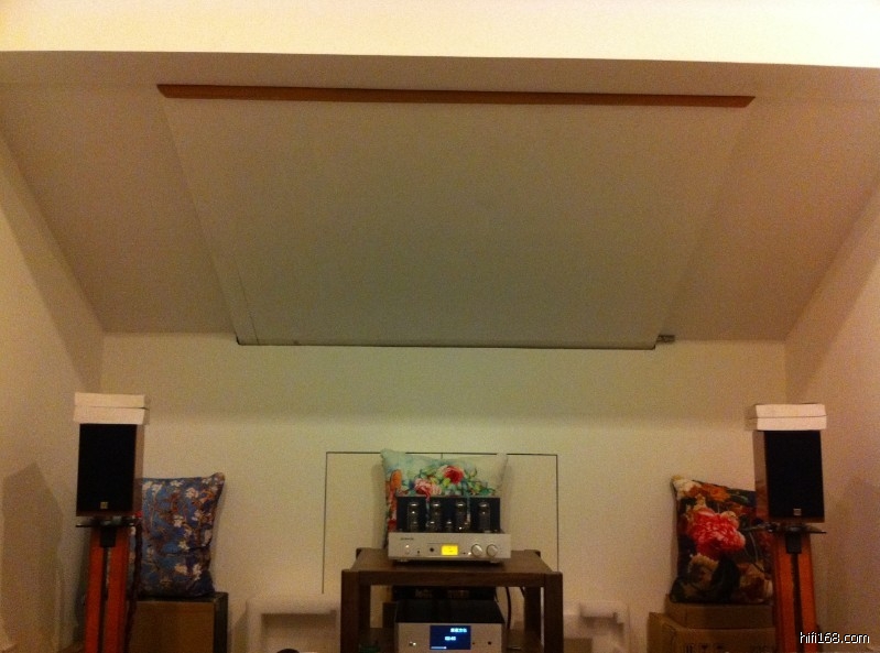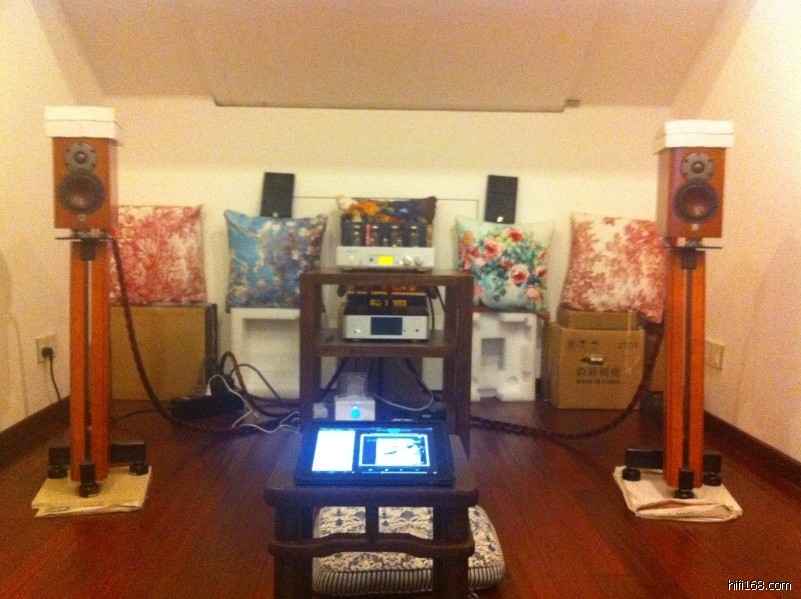 然后是精心摆位,这个需要很大的耐心,反复多次试验才行,我是尽量将音箱拉前拉宽;