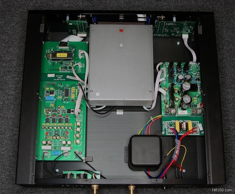 内部结构用料十足当笔者打开顶板後首先看见一只用金属罩封著的变压牛,和一整个用铝板封死的CD碟盘,尽量减少不必要的干扰,跟著还有两粒巨大的6800uF滤波电容,整个机身也是用很厚的金属铝板包围著,最夸张的是,除了用铝板四面盖著碟盘,在碟盘底下有一块一寸厚的黑色金属板承托著。笔者打开碟盘上的面板,更发现MBL用了大量金属零件来制造这个碟盘,用意应该是尽量利用坚固的碟盘来减少播放期间不必要的震荡。虽然这个只是MBL的入门型号,但已可看出设计者的诚意和深厚的设计功力。前方显示屏用了蓝色的液晶显示,而且还细心地提供四级的光暗调校,碟盘设计结实,每当打开时总会听到一下机械声音,会令人觉得很可靠和耐用。