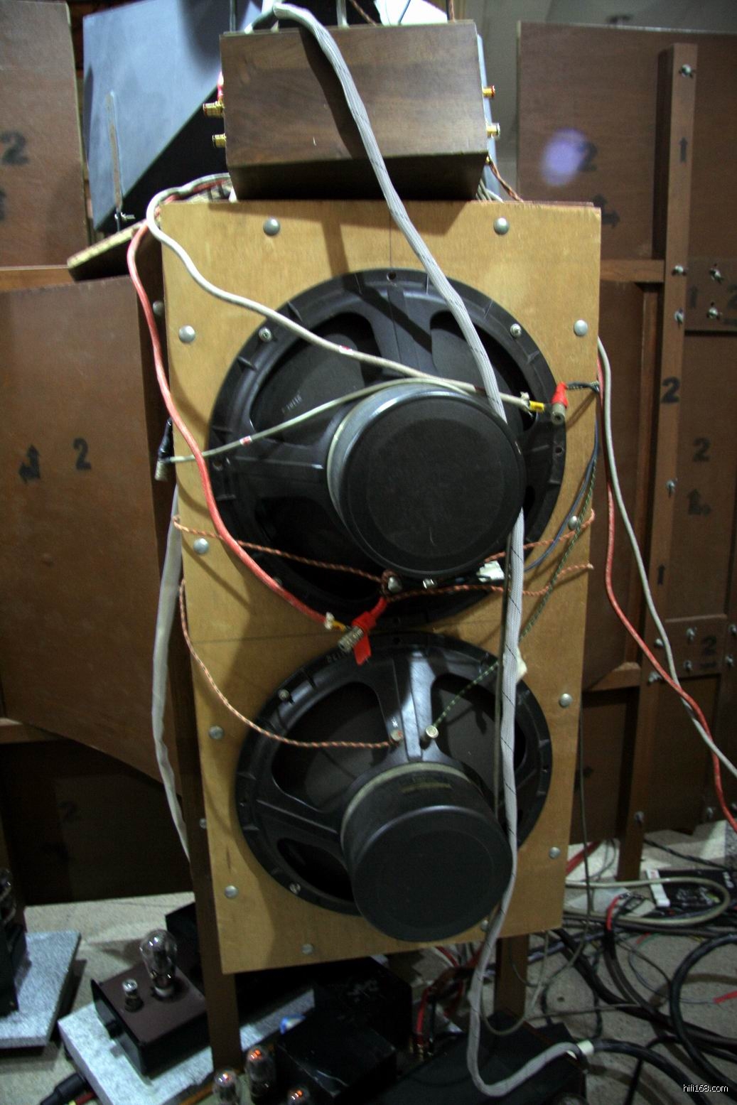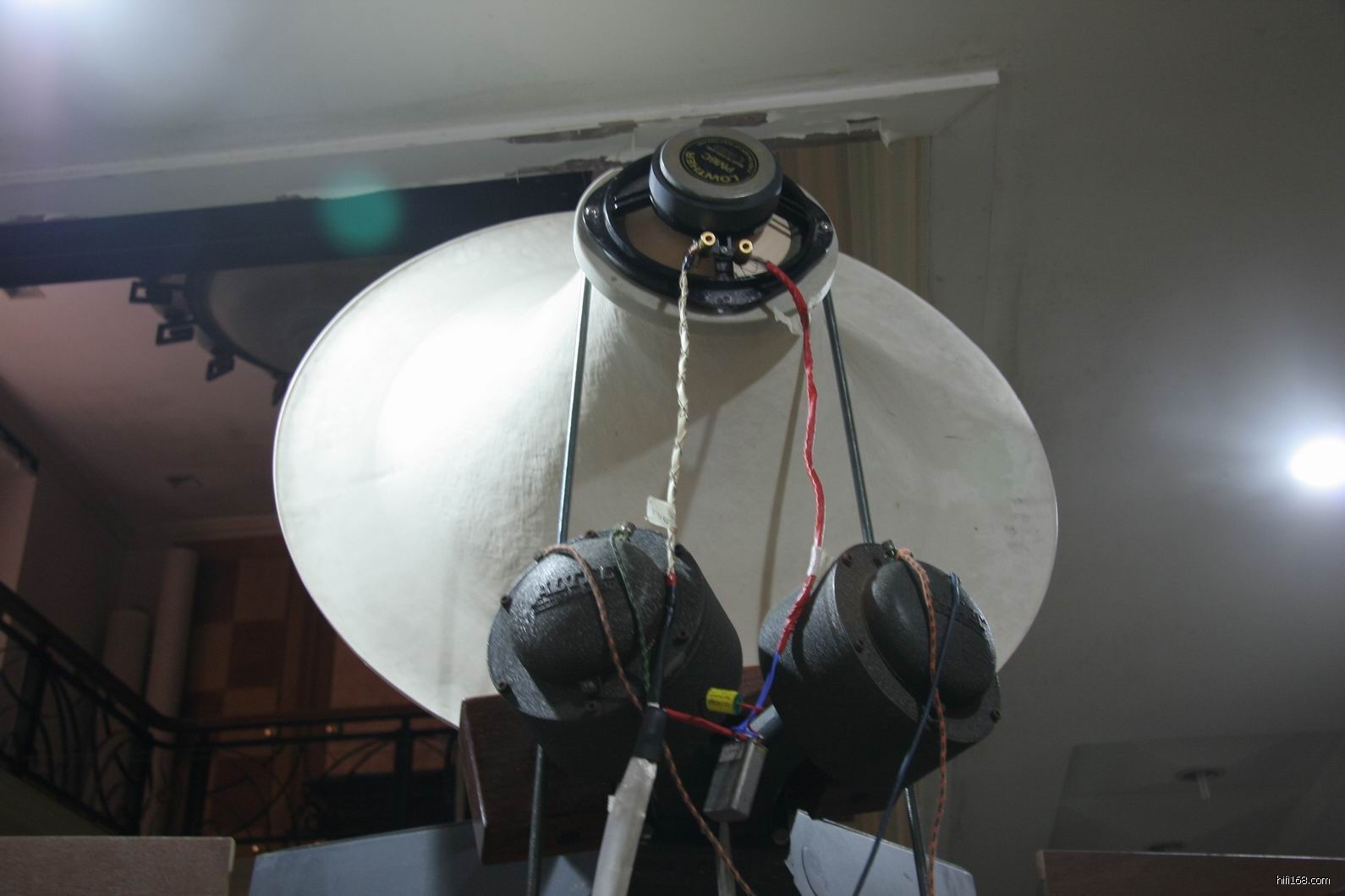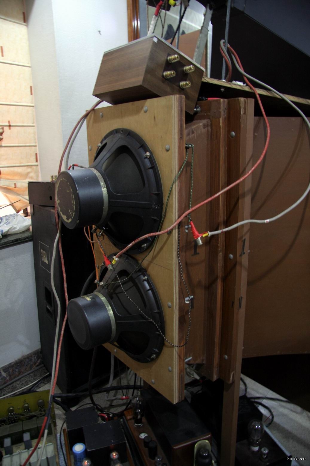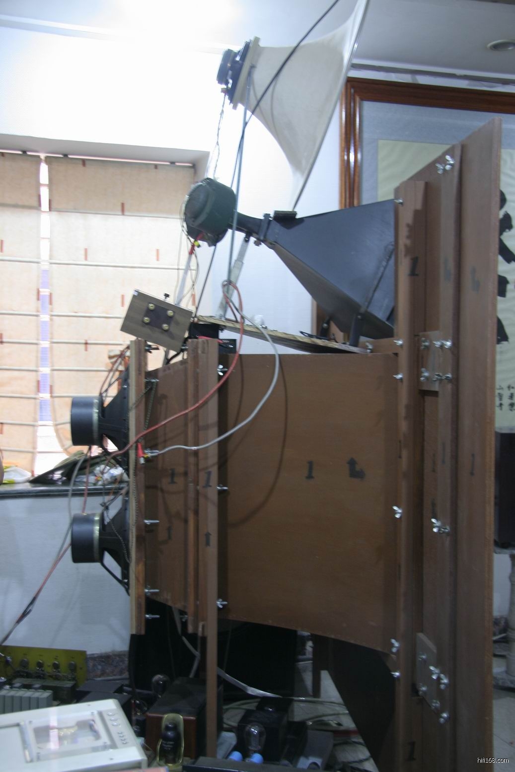 障板后面的古董喇叭单元。