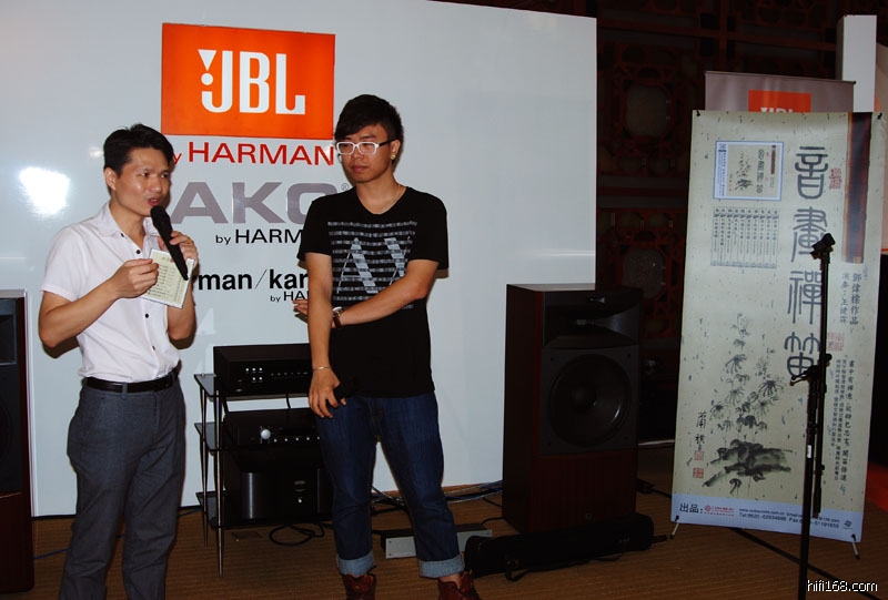 王健霖在哈曼展厅介绍自己的专辑。(2012/9/11 17:40:50 上传)