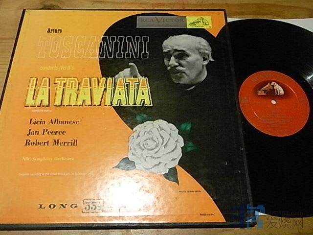 历史录音威尔第茶花女,托斯卡尼尼,RCA美国阴影狗只有单声道,NM—至NM,盒装2LP100元