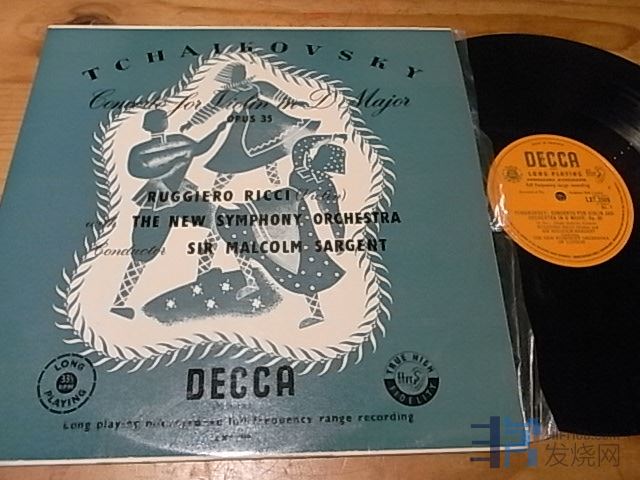 柴可夫斯基小提琴协奏曲,里奇/萨金特,DECCA英国LXT橙金首版只有单声道,NM—至NM(轻擦痕不影响),180元