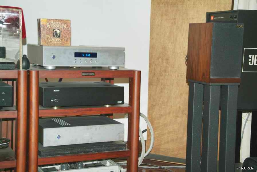 播放“宋祖英”美国肯尼迪艺术中心录制的碟子---------刚刚开始小弟并没有说明是哪一位歌手,一开声,“何评”就问道:这是不是宋祖英的歌???我怎么从来没有听到过那么像真实的感觉!?!?小弟把碟片外壳摆好,不紧不慢的进行拍照,我说:何老师现在能够体会到的现场和声场实体感还有像真度了吧!?“何评”沉闷一下:是啊!果然是听到像真传神。小弟自己感受到:器材如果搭配得当,播放出来的听感是让人感受到现场,这种现场是过后拿钱买不来和再也不能历史重现的,要不然就只能听到音响的声效啦!这两种感觉是截然不同的,自己体会,欢迎扳砖!!!