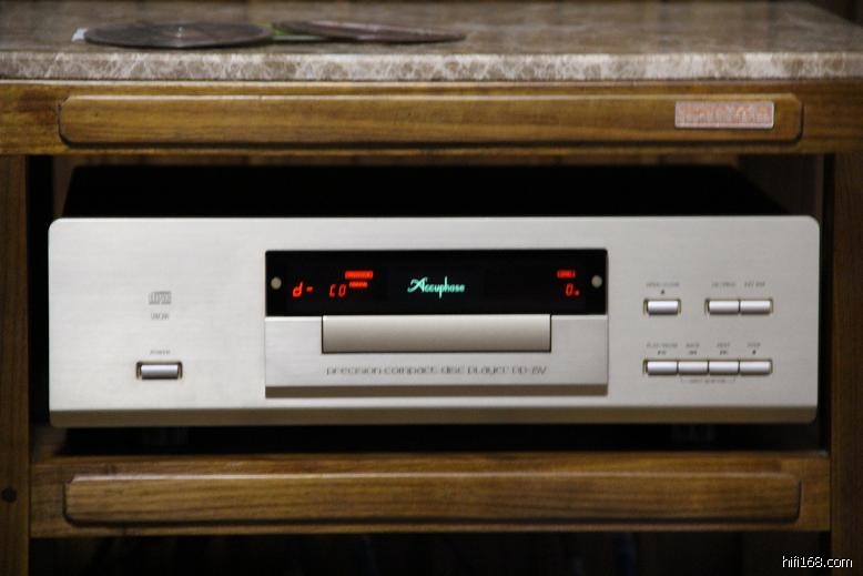 Accuphase DP-75V:售价约58000HK$。此机是在原DP-75的基础上改进而来的新款,中置式转盘,CD托盘用两个转盘锁锁紧,电源有两只多绕组密封牛,各部分以金属板隔离,光头拾取的数字信号经金嗓子的R F微放大器再送入滤波电路,DAC用多重Delta Sigma(MDS)共6枚芯片组成并联式全平衡线路,左右声道各用两块直立的解码线路板,据说可对付未来的SACD及DVD Audio数码输入,可能是要额外加一块ADB2的数码输入板,就可兼容DVD Audio或SACD,再配合Accupase厂自家的Ultra jitter free PLL Circuit线路,减小jitter失真,全平衡的模拟输出信号设数码音量控制。香港写手称它全频的透明度和细腻度超凡入圣,直逼合并式CD机王L inn CD-12。
