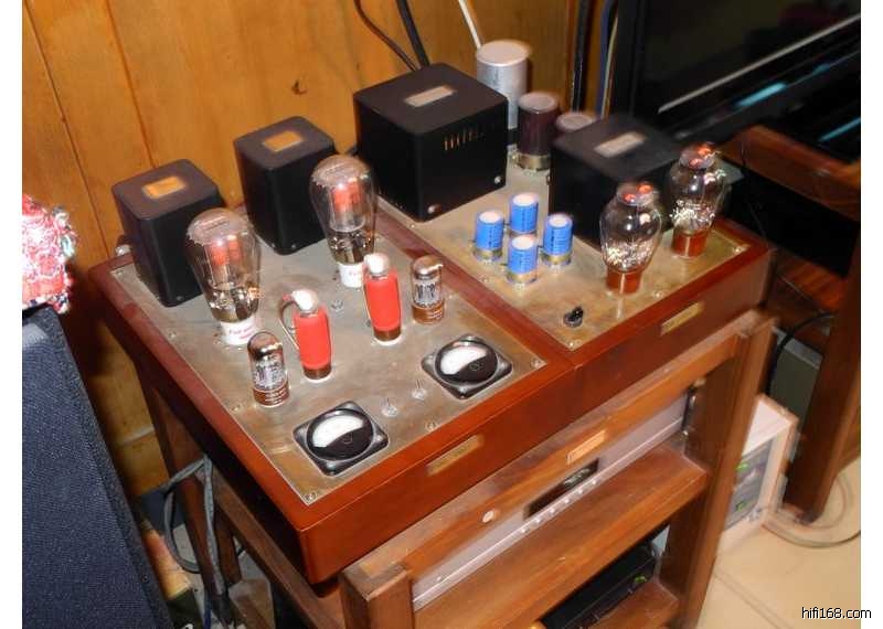 天津Full Music全真300B/n一对;中山牛魔王的特制300B输出牛一对;英国大盾的NOS管EF37(前级放大,直代6J7)一对;( 天津Full Music整流管274B/n一对,已牺牲); 俄罗斯复刻Tung-Sol的6SN7 GTB一对;一级耦合:德国M-CAP银膜油浸电容一对;二级耦合:美国卡达斯金箔电容一对;滤波电容用的是JENSEN电解电容一只;RCA信号插座用的是美国CMC紫铜沙金插座1套;输出牛到喇叭插座用的是进口纯银线等。