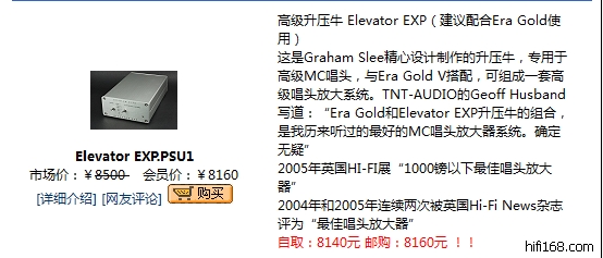 TNT-AUDIO的Geoff Husband写道:“Era Gold和Elevator EXP升压牛的组合,是我历来听过的最好的MC唱头放大器系统。确定无疑”