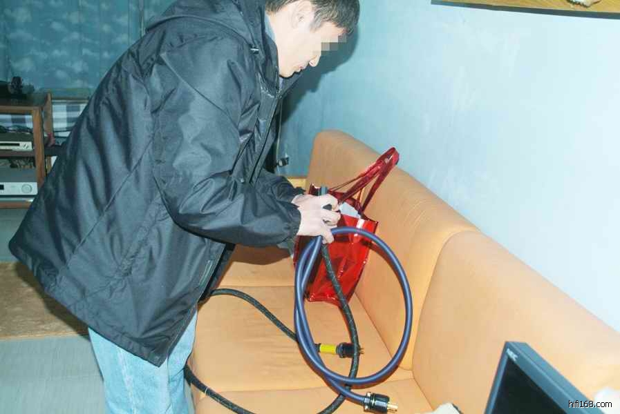 在小弟的架势++PMC系统的煲机过程中,平乐哥哥非常认真的拿起原厂古河电源线和自己散装古河线看头又看尾的非常仔细,认真。