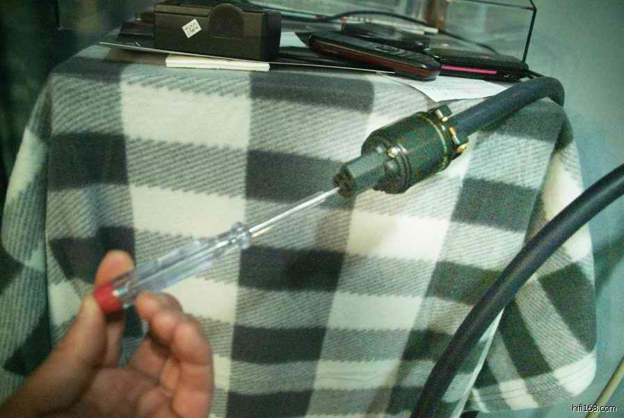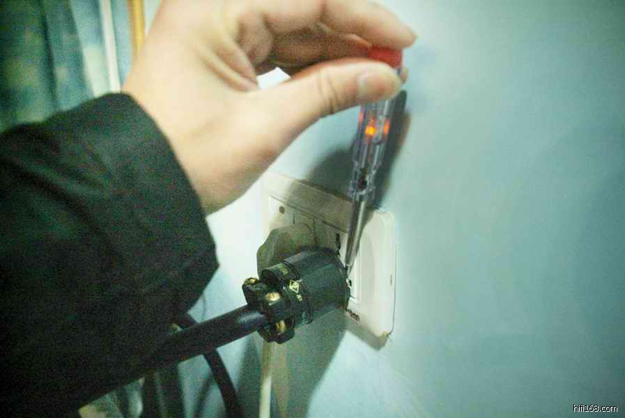 小弟马上对平乐哥哥的另外一根古河电源线用小头电笔测量相位,果然----大家看,墙插是“左O右火”,而出口头则是“左火右O”的古河“美标结法!!!,天啊!小弟我范了明显的相位使用错误!!!