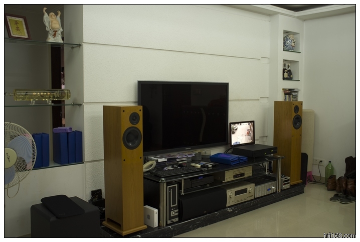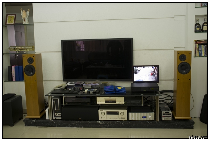 他居住在老市区一条闻名的老街,新兴街,曾经是汕头繁华地段。客厅很大,有40平方以上,大沙发,大电视。但他发烧慢,不久前受朋友所“害”,购置了这么一套,都是好东西,只可惜房间不能有大的腾挪,效果打了折扣。可是这样的折扣不需要介意,有了音响,家就自然增加了和谐。