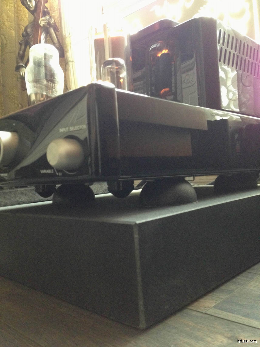 每台845s在花岗岩底座上面用上4颗CM钉垫,如虎添翼、气定神闲。其实按照845s的重量还应该在牛下面加一颗CM钉,但是现在手头已经没有多余的钉了,其他两套放在电处和CD上面的也撤不下来。
