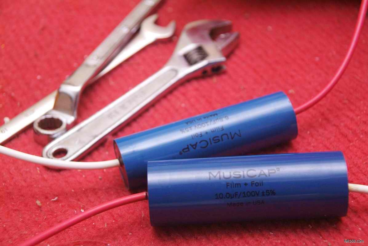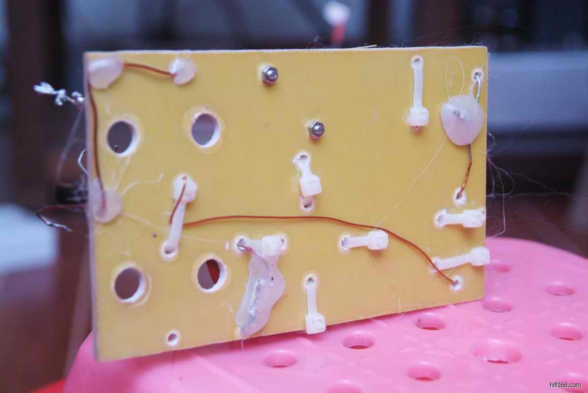 各位观众,上面黑色那条的就是顶顶有名的——杜南电阻啊!由于美国第一音乐电容的体积过大,只有另外再装配底板,整体装好的造型不比原厂的分频器差吧!?小弟看来要养眼得多啊。