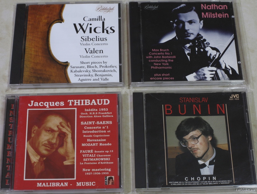 [table=98%][tr][td=1,1,725]51、BIDDULPH 威克斯:西贝柳斯、瓦伦小提琴协奏曲 已绝版 有IFPI(这个没有无码的)盘质良好 200[/td][/tr][tr][td]52、BIDDULPH 米尔斯坦:布鲁赫第一小协和其他小品 01首版 无IFPI 盘质良好 300[/td][/tr][tr][td]53、MALIBRAN 蒂博:曲目见封面 盘质良好 300[/td][/tr][tr][td]54、JVC 布宁:肖邦国际钢琴比赛 无IFPI 几条细痕 150