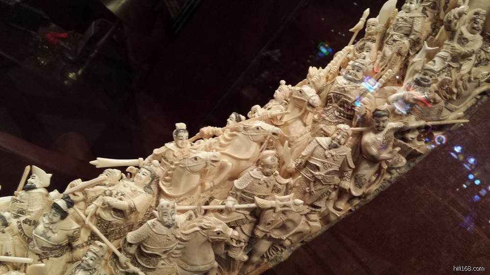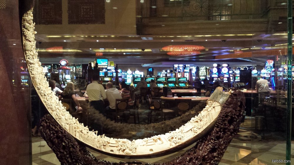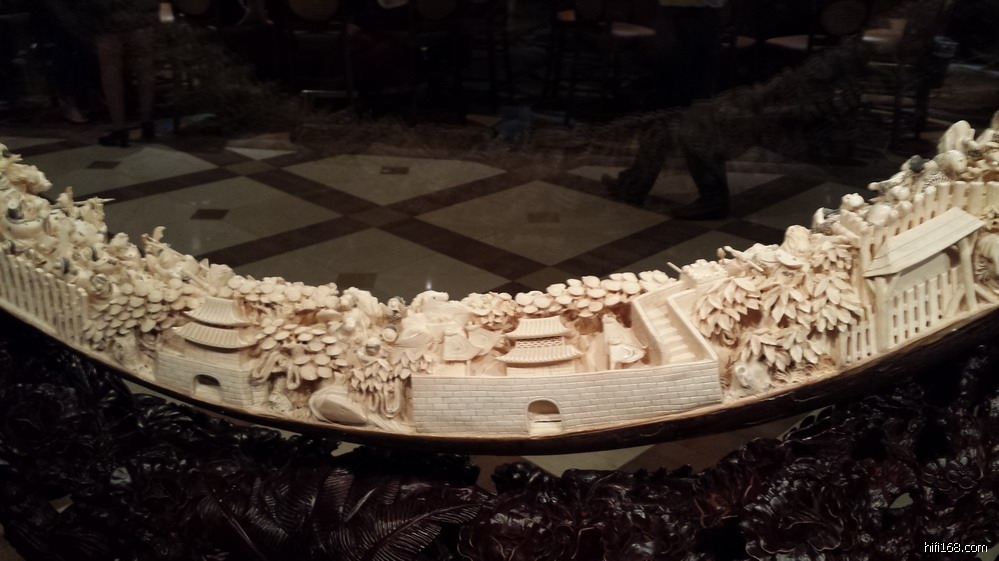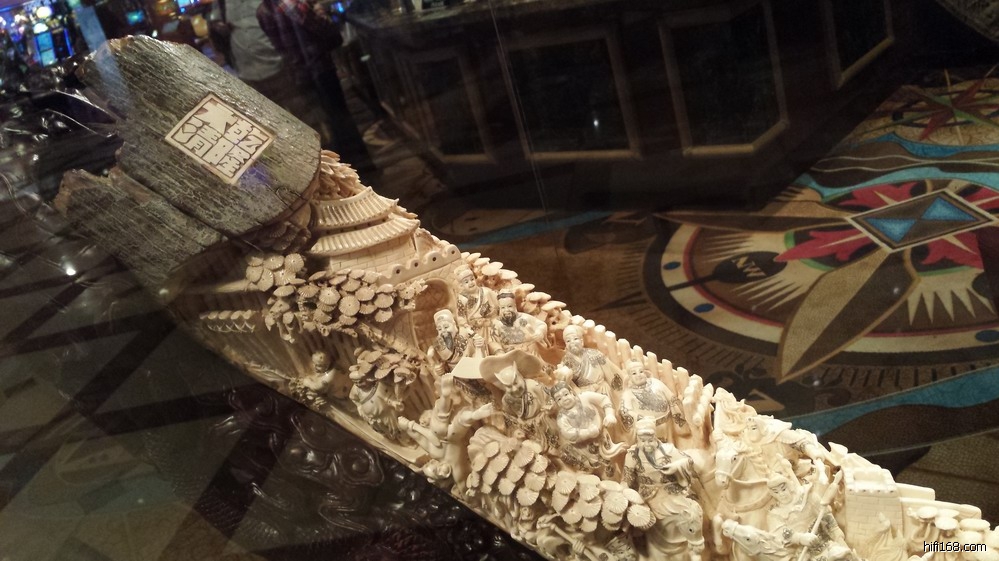 )”,见酒店一楼的赌场置立二件“镇店之宝”——全手工锻造的哈雷摩托车和象牙雕。其中那件象牙雕还是我国清代的艺术佳作,特拍下来与众烧友分享: