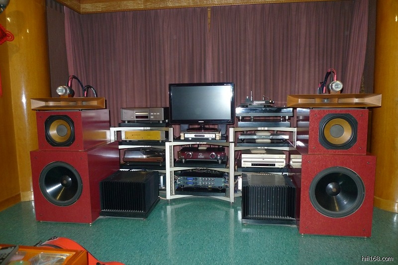 原帖由 aa52838 于 2014-3-14 10:29:00 发表 土炮永远都是阿Q精神。 | 不要太绝对。DIY也要看是什么人。以下照片的这套系统,是广东吉它协会会长江伟杰的,音箱是DIY,分频器是英国品牌,是4分频4单元,7台功放来推。声音非常震憾。 |
