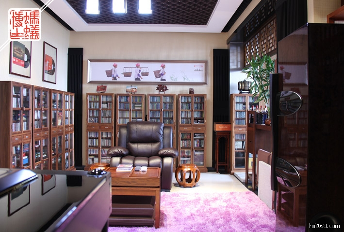 我的办公室面积是将近55平方米,纯粹商业空间,层高在4.2米以上,在装修时我就一分为二,用将近25平米来作为自己发烧听音(大约尺寸:6.8米X3.6米,空间装饰高度2.9米左右),剩下的30平米(空间装饰高度3.2米左右)作自己日常上班工作和发挥创作的空间。听音室弄在办公室,最大好处:器材工作可以发挥到极致,完美服役,随时可以聆听,而且声音想多大就可多大,完全由自己随性控制,简直可以不担心影响别人与否。