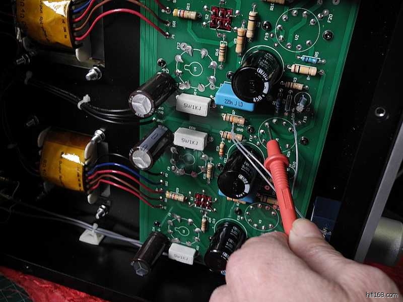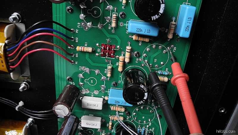 整机虽然为全交流灯丝供电,但由于线路分布排版十分合理,因此即使本人并未采用灯丝交绕连线手法,其信噪比仍然非常之高。将音量旋之最大,耳朵紧贴低、中、高三个喇叭单元,也未耳闻到本底噪声。