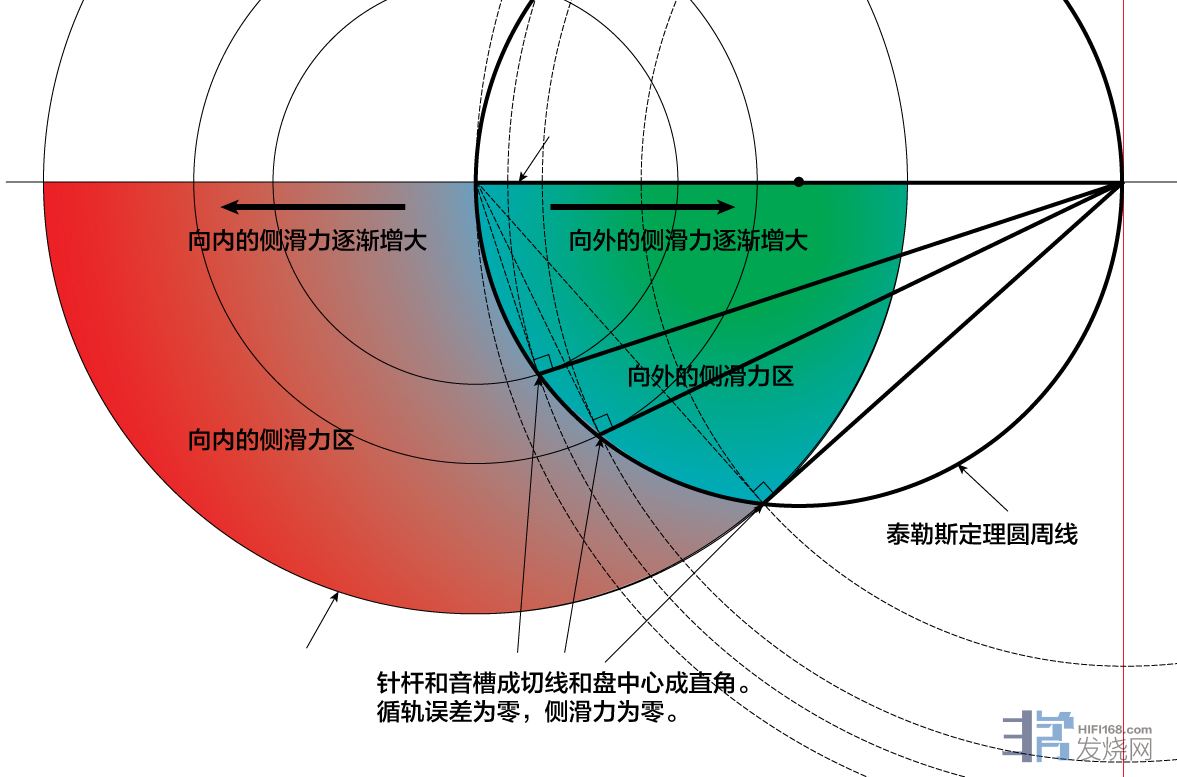 你当初坚持这个理由,是不知道补偿角的作用,一心想着只要唱头、唱针处于切线、切点就没有侧滑。
