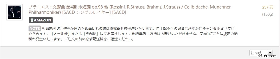 [font=楷体_GB2312][size=3]来源:日本亚马逊第三方([color=#333333]Single SACD应该不用担心盗版的问题吧?[/color])[/size][/font][font=楷体_GB2312][size=3]品相:全新仅拆[/size][/font]