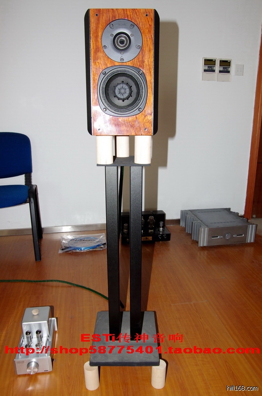 为了追求尽善尽美的音响效果,对听音环境作了微调,一是想尽量把书架音箱的高音调整到与听音者的耳朵在同一水平线上,这样声场的效果和结像的高度可以达到最佳。本来想换一对高一点的金属脚架,但是这样高度的脚架很难找,要定做,另外成本也比较高。考虑到最好声的还是实木,我就请认识的师傅用我自己感觉最好声的木头车制了12个圆木柱,在每个金属脚架的上下各放3个,两前一后。放上之后确实效果超赞,声场大小合适,歌手也“站”起来了,音响效果非常棒!