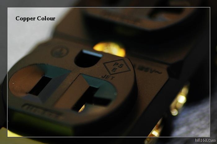 HE-G 插芯是镀金的,插座塑料部分印有Hi-End字样。