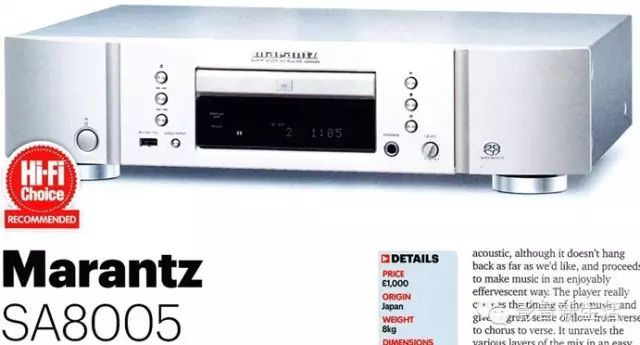 ● Marantz SA8005 CD/SACD播放器荣获《Hi-Fi Choice》“RECOMMENDED Award”(五星推荐大奖)