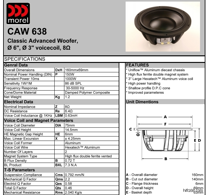 Morel CAW638 6" Woofer