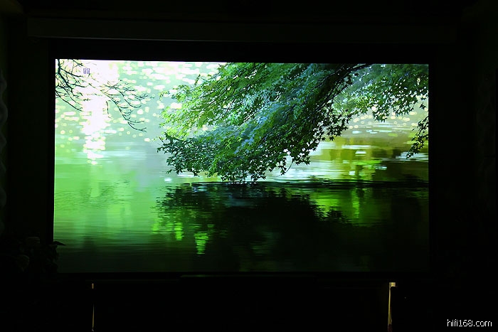 现场的效果的确如此,这个投影效果已经达到了等离子显示器的效果,光影效果非常出色,投影画面超级精细,色彩饱满艳丽。