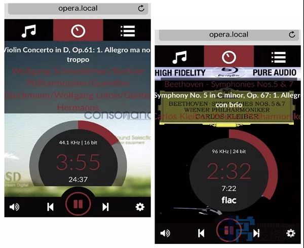 延续欧博Reference 8 Pro的架构,RDS1数字转盘可以说是一台预装了Volumio深度优化版的ARM板,操作上与Volumio没有太大区别,界面直观简单易懂,支持中文语言,在手机、Pad、PC等任何支持浏览器的设备上都可以操作,可以播U盘、硬盘亦或是NAS里的数字音频。Volumio本质上是一个高度定制的Linux系统,它支持树莓派、任何X86电脑及比较流行的其它几款ARM板,播放和系统控制是通过网页实现的。使用时有二种方式,一是不与路由器连接,单独使用RDS1自身的WiFi 热点,透过手机或Pad进入操控界面。第二种是用移动终端连接路由器,RDS1具备有线和无线二种模式。厂方建议用无线连接。之后打开浏览器,输入opera.local就可以访问并控制RDS1数字转盘,使用体验上跟APP大同小异,欧博提供了一个符合我们习惯的和便于操控的方式,除了第一次连接网络需要一些设置外,日常操作体验堪称完善。另外原来的Volumio不能放SACD ISO文件,欧博RDS1却可以,这是因为欧博进行了深度优化,同时规避了使用树莓派作为播放系统性能有瓶颈偶尔会有Delay的问题。
