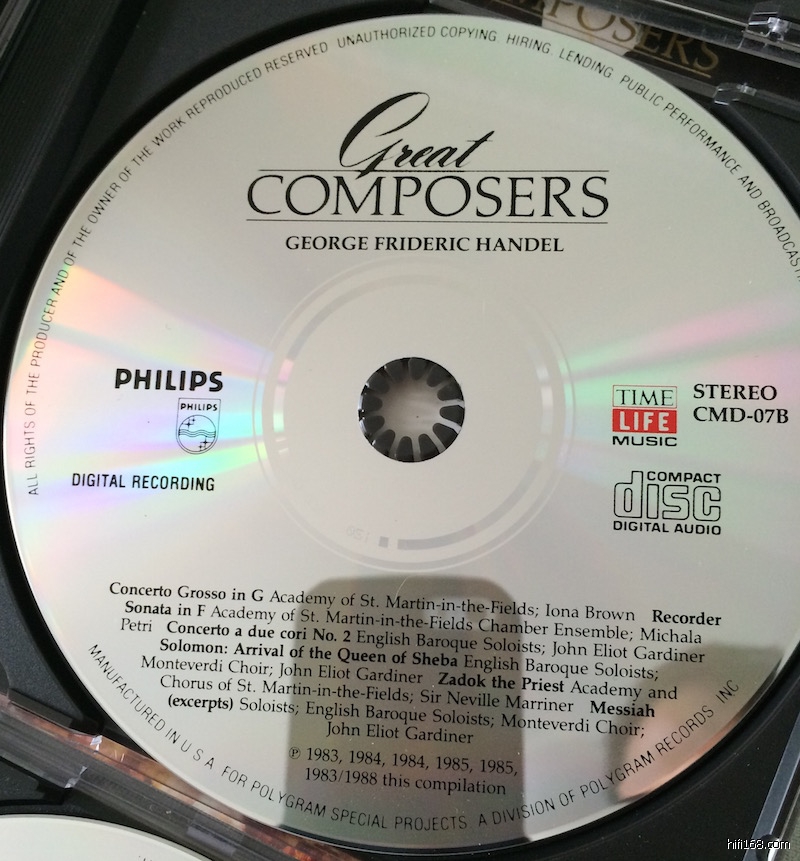 [*]Solomon: Arrival of the Queen of Sheba - English Baroque Soloists/Gardiner (Track 16)[*]Coronation Anthems: Zadok the Priest - ASMF/Marriner (Track 17)[*]弥赛亚(选) Messiah (excerpts) - English Baroque Soloists/Gardiner (Track 18 - 24)[/list]