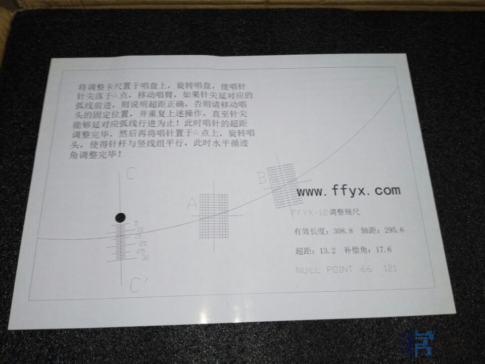 类型:高输出动圈立体声唱头(MC)结构:针尖:日本锥形针尖,寿命>1000小时磁路:LPAUDIO半开式均衡磁路针杆:铝唱头高度:16.5毫米重量:6克电性能:输出电压:1.18mV/33转,1KHz阻抗:120欧姆频率响应:20-20KHz±1DB通道分离度:>25DB左右声道平衡度:<1DB参数:阻抗匹配:47KMM输入或500欧以上MC放大,120-200欧姆MC输入牛推荐针压:2.0克有效针压范围:1.8-2.5克进入状态时间:20小时