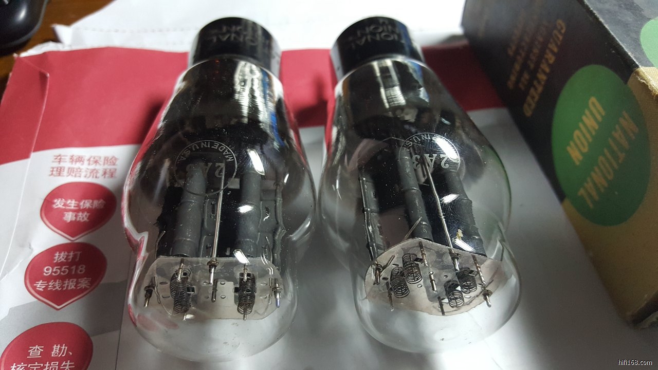 全新30年代末期美国产National Union 2A3一对,霉屏,弹簧灯丝,铁片环,管座刻字版,配对99%,只有一个原盒,详情见图。价格4680元