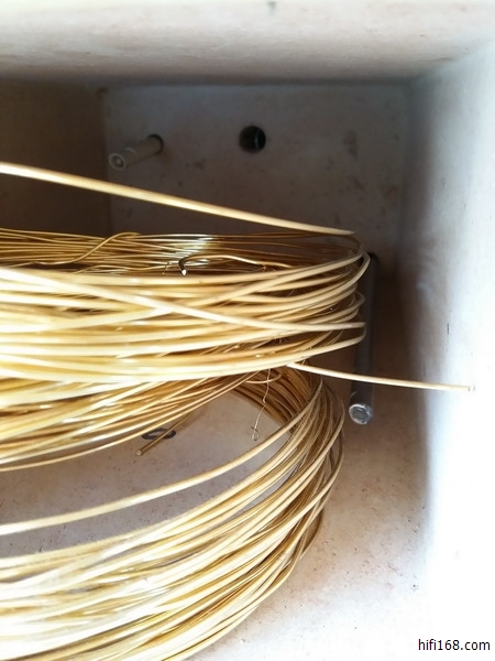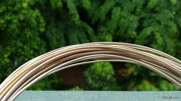 把现在的9999银丝做成线材测试,声音很通透,但比较薄缺质感。在银丝表面镀一定厚度的纯金,可以降低表层电子传输速度,镀金线的声音立即变得厚润温暖,但高低频过渡比较生硬,同时速度也比较慢。