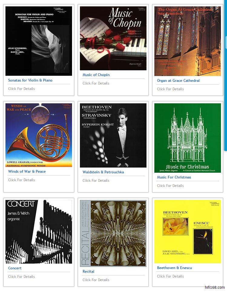 这张CD俗称“黄碟”,是名震江湖的Wilson Audio出品的一张室内音乐集。音乐的可听性自不必多说。两位演奏家分别使用了一把1719年的“Guarnerius”名琴和一架"Hamburg Steinway"钢琴。录音在Mills College的Concert Hall进行,完全体现出了一个开放自然的音场和小提琴甜美的质感。知道这张CD的数码混音师是谁吗?竟然是Bruce Leek(现为美国Klavier唱片公司的掌门人)!