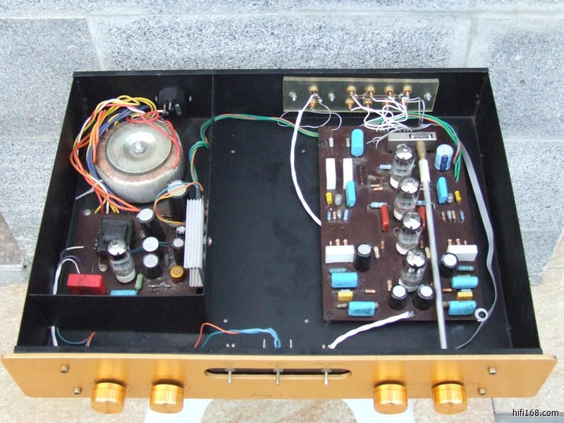 6N3胆前级,丽特机箱,SRPP电路,发烧级用料:英国原装电源牛、独立6.3V灯丝红牛、红宝石滤波、德国红威马电容、日本金威电阻、日本NITSUKA电容、日本东和电容、思碧耦合电容、步进电位器等。用管:6N1整流、6N3*4放大。