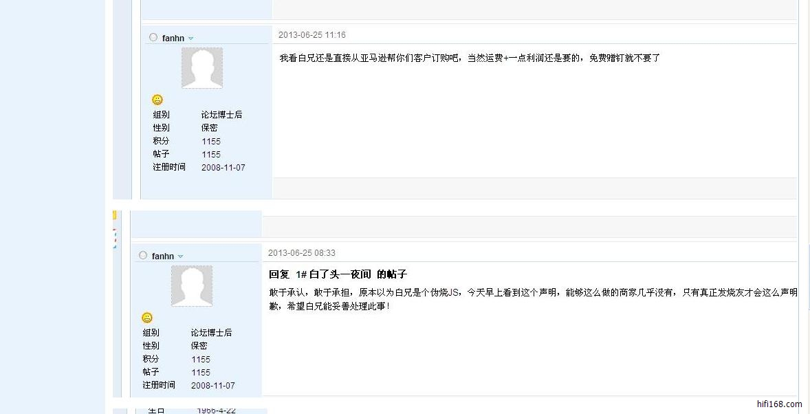 原帖由 烧到残废 于 2015/12/31 9:54:00 发表海外定制?请问是哪个作坊,作者?运输成本你算过没,如果真是老外做的,那么手工费你只要要多少吗?才几百元??说实话吧,发烧友不是随便发个文章就能忽悠的以上就是当年一位网友质问:[url=http://bbs.hifi168.c......