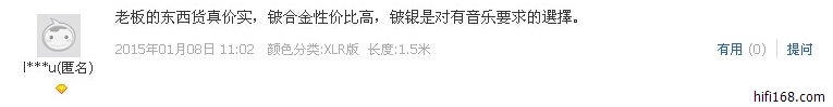 铍银RCA信号线最新听感评价: