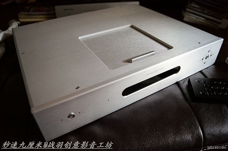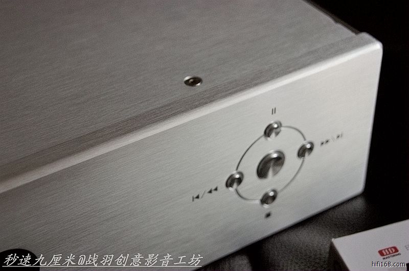 M12 CD机面板使用厚达10mm的铝板精工制成,居中一枚长腰形信息显示屏坐镇,采用进口自发光OLED屏幕,显示效果清晰柔和,屏幕供电架构电路对声音干扰仅有普通LED屏10%,价格成本却是LED四倍。左侧为一枚圆形电源开关按键,右侧为五枚功能组合套键,采用一枚居中四枚十字环布的方式排列,可分别实现暂停,前进;后退;播放等功能,而CD机同时配备全铝精工遥控器一枚,所有按键功能尽可通过遥控实现,遥控器尺寸有如烟盒一般大小适中,通体漆黑显得稳重大气,拿在手中极具份量。整个面板除了屏显上端横贯一行Compact Disc Player字体傲然印刻之外再无任何多余雕饰,简洁务实的低调风范跃然呈现。