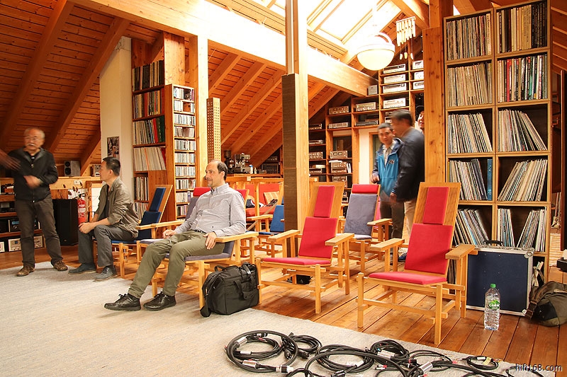 托马斯先生不但设计扬声器,还设计了机架、家具等等,例如试音室里面这些凳子,坐着好舒服。