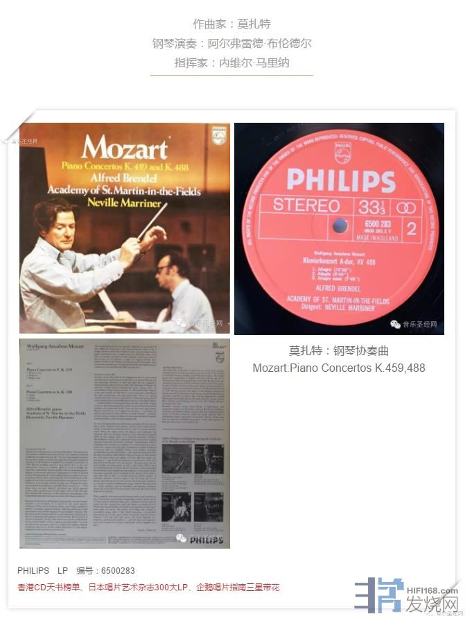 今天与大家共赏的唱片《莫扎特:钢琴协奏曲》正是这 17 首中的两首。该唱片有由飞利浦公司出版,由马里纳指挥圣马丁室内乐团演奏,钢琴演奏则是布伦德尔。