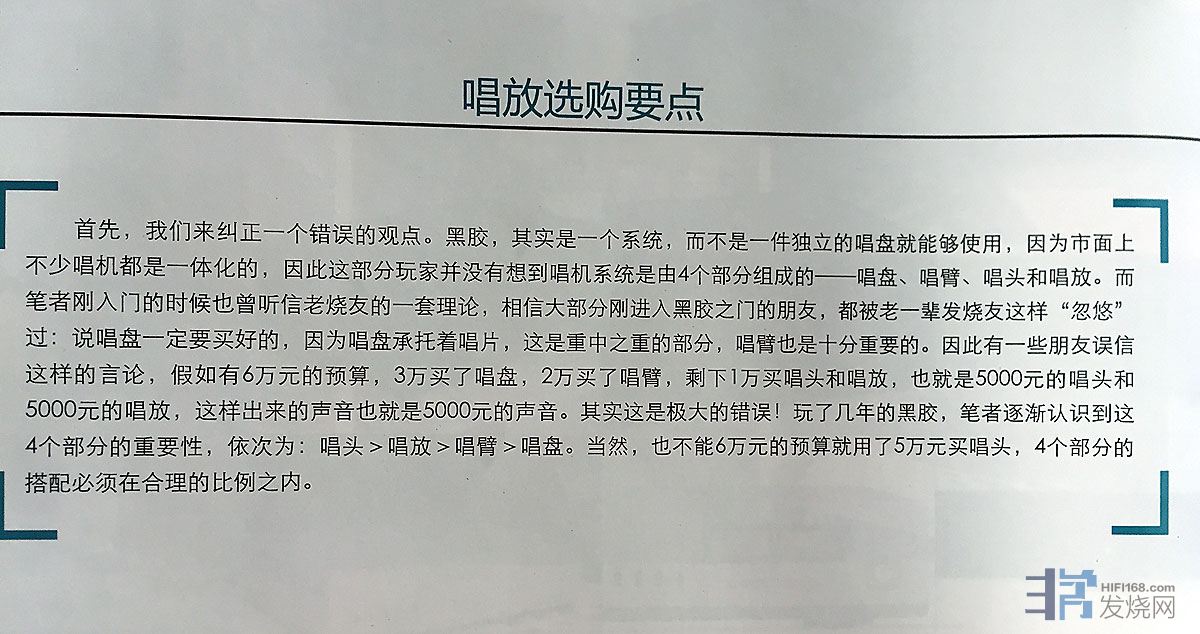 翻阅最新10月号的《视听前线》杂志,看见一篇唱放专题,里面提到一个新颖的说法,对声音影响最大的,唱头比唱放重要,唱放比唱臂重要,最不重要的是唱盘。之前我自己都没有这样考虑过,但一细想,的确是有道理!