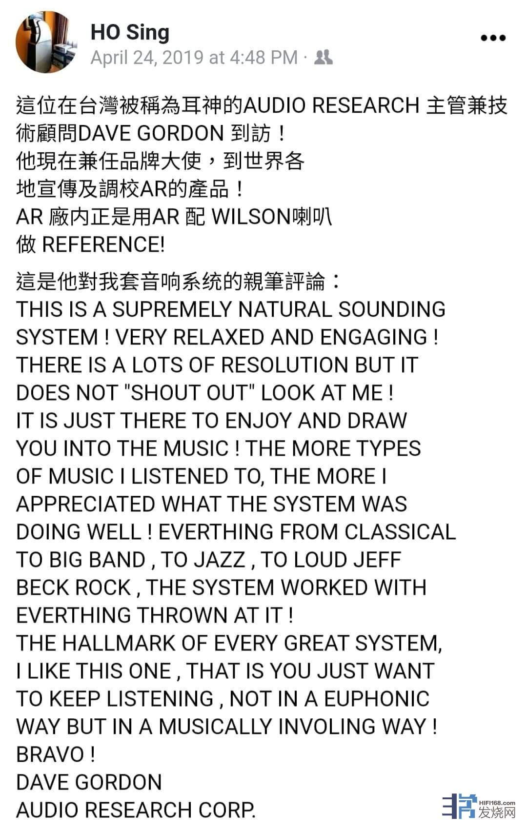 这位在台湾被称为耳神的AUDIO RESEARCH主管兼技术顾问DAVE GORDON到访!