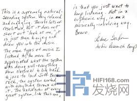 這是他对我套音响系统的亲笔评论: