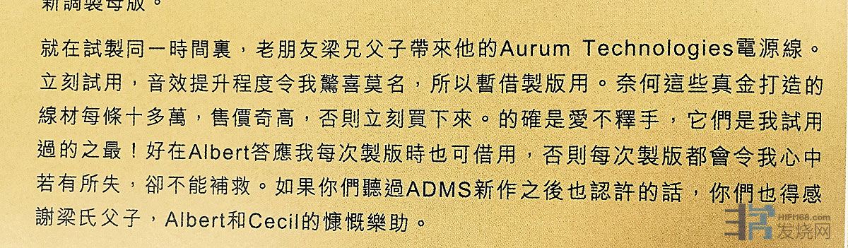 "去年底家访金线梁,亲耳听黄金镀膜包插头的音效,前辈亦破例包了2条我自用的电源缐,感谢!