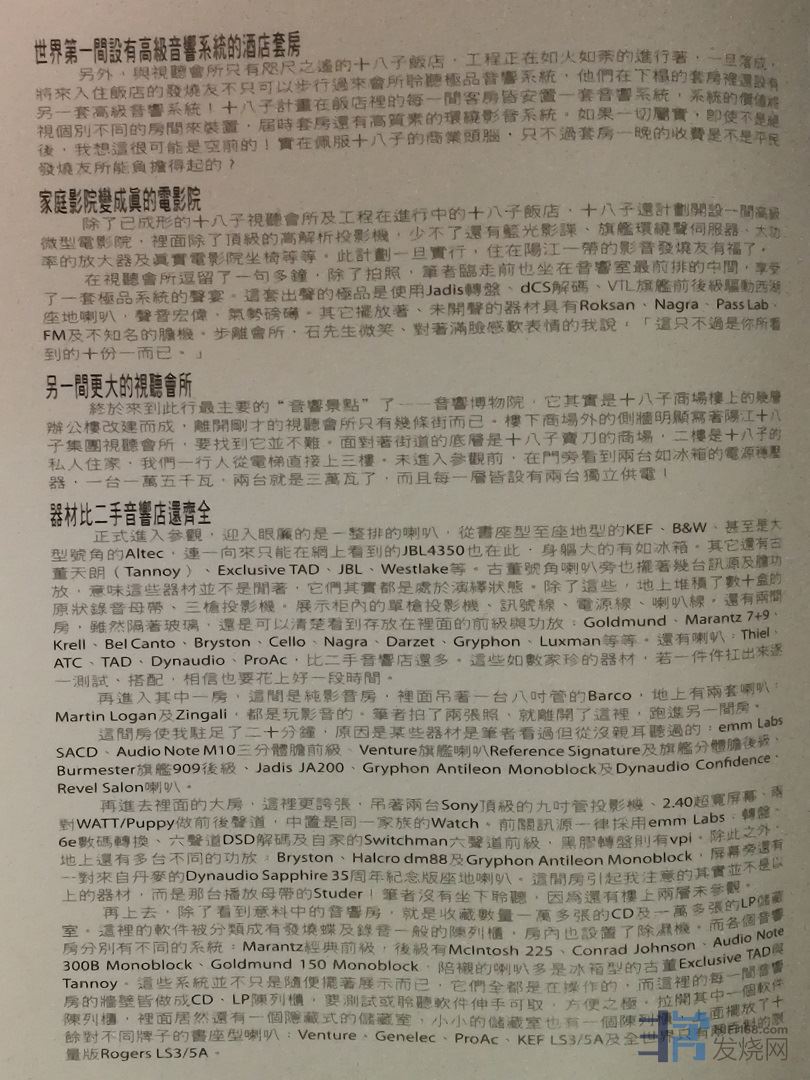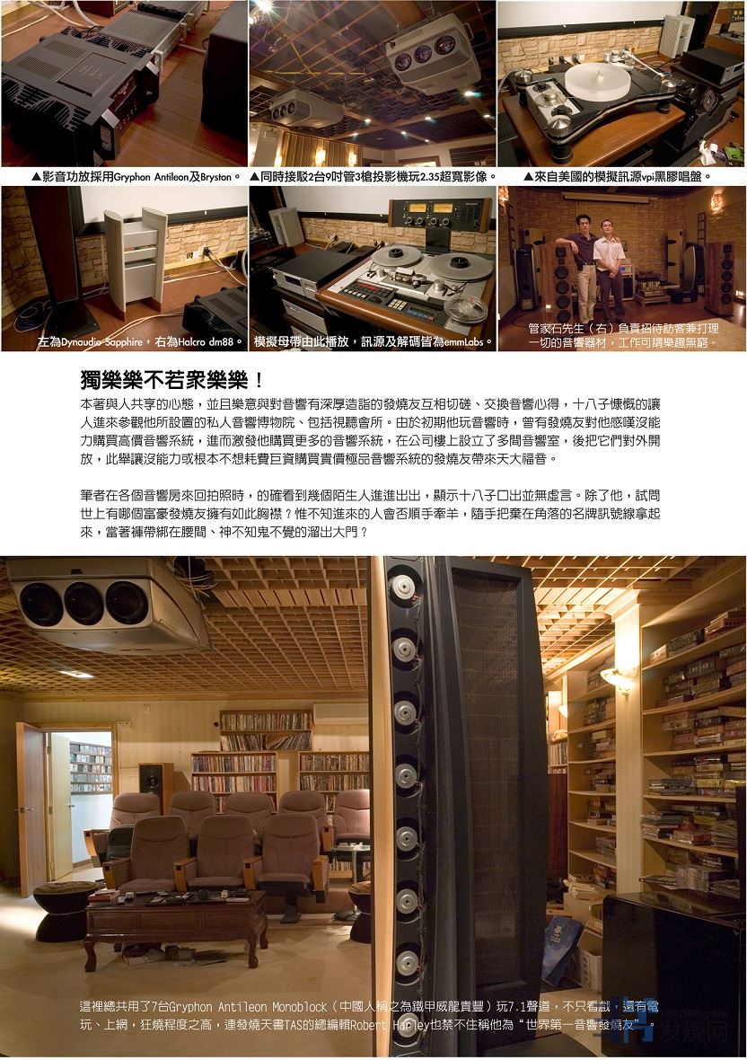 再上到最高的一层楼,这里依稀记得共有四间房,除了一间只能容纳一位聆听者的小房外,其它三间房皆放置天价 级的极品音响及影音系统。