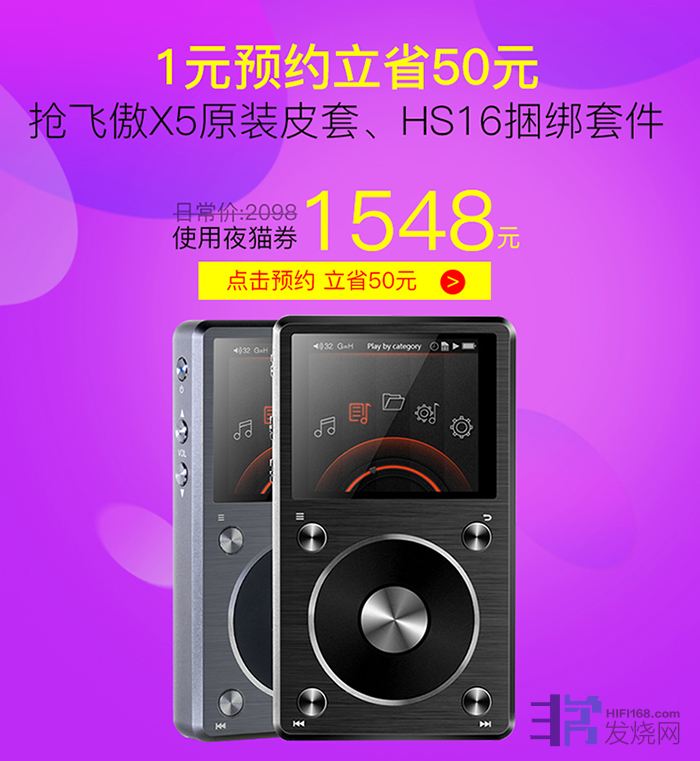 购买飞傲X5 1元抵50元 再降500元