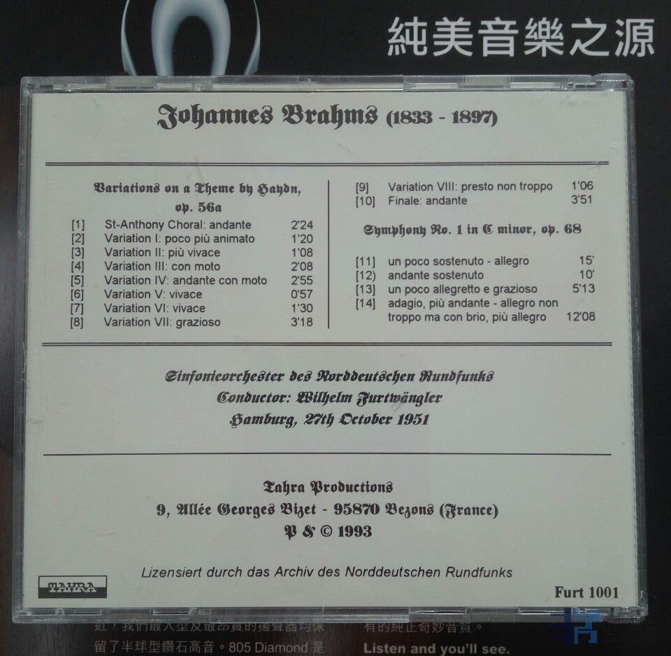 [font=Microsoft YaHei][color=#333333]5.[/color][/font][color=#333333]tahra富特文格勒 Furtwangler 勃拉姆斯 1951汉堡 罕见Dureco首版 165 (已出售)[/color][/size]