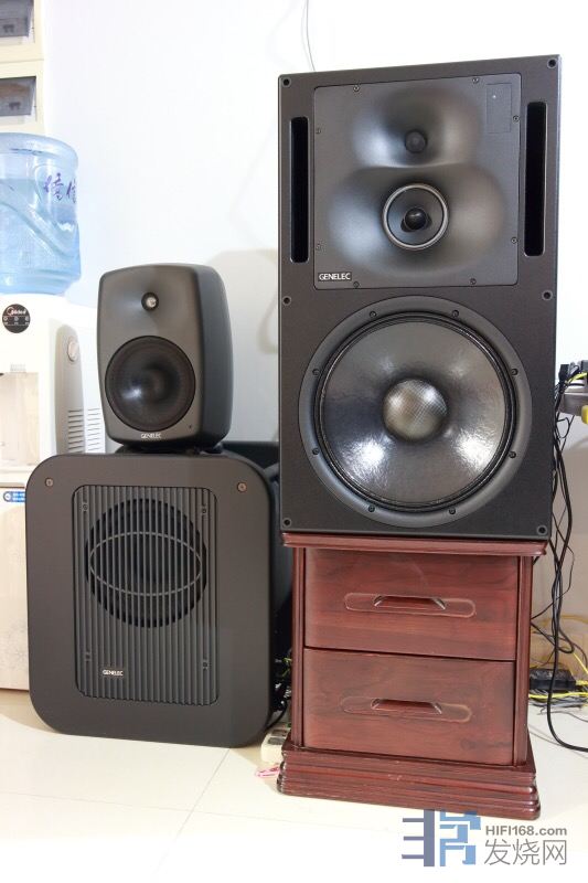 相比于丹拿M3,这个S5X价格只有大约1/2。相近价位的有源箱,是真力的单15寸低音的1238(下图中矮柜上的这个)。但这尊容,不太接受啊。