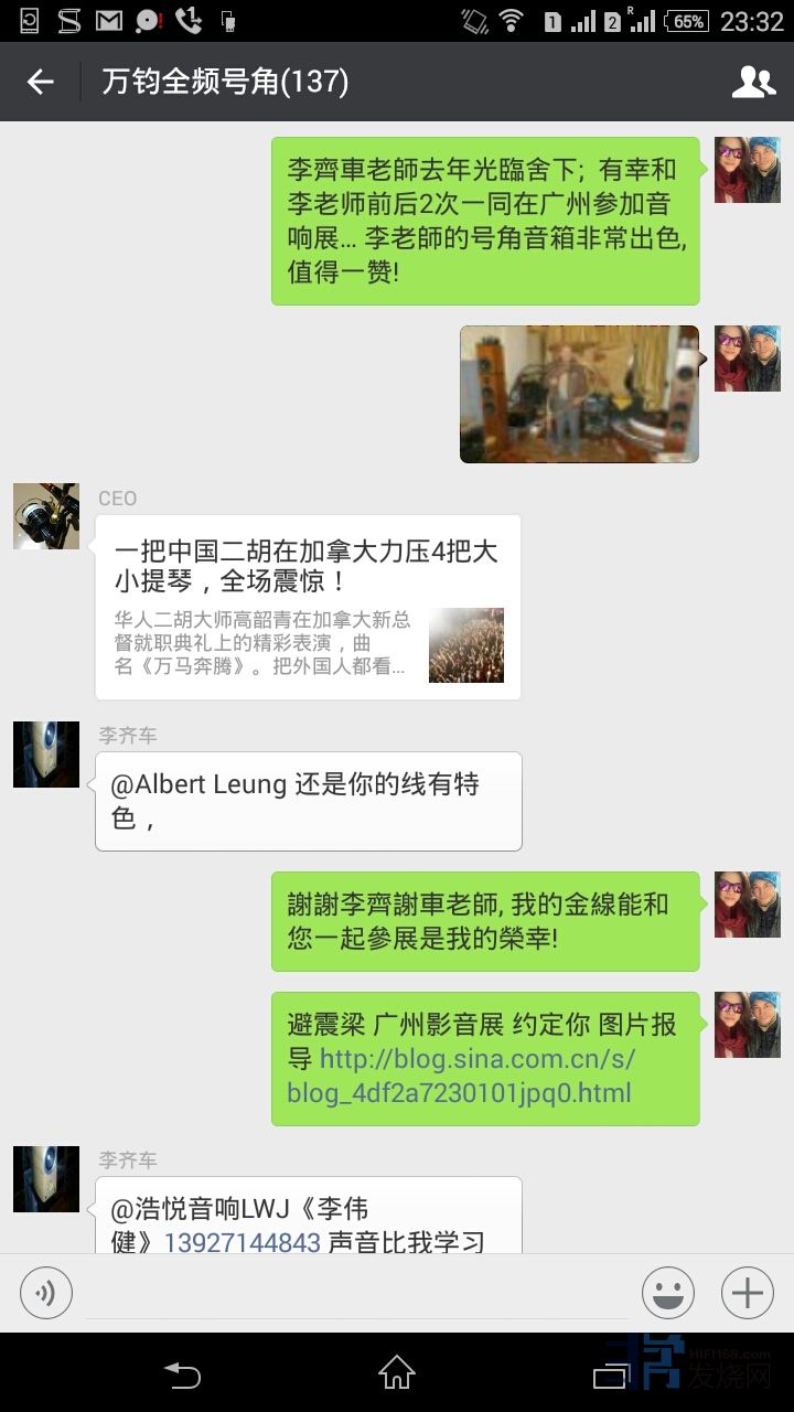 今次参展的缘份来自万钧全频号角微信群组, 群组现有188人,群主是李齐车老师,